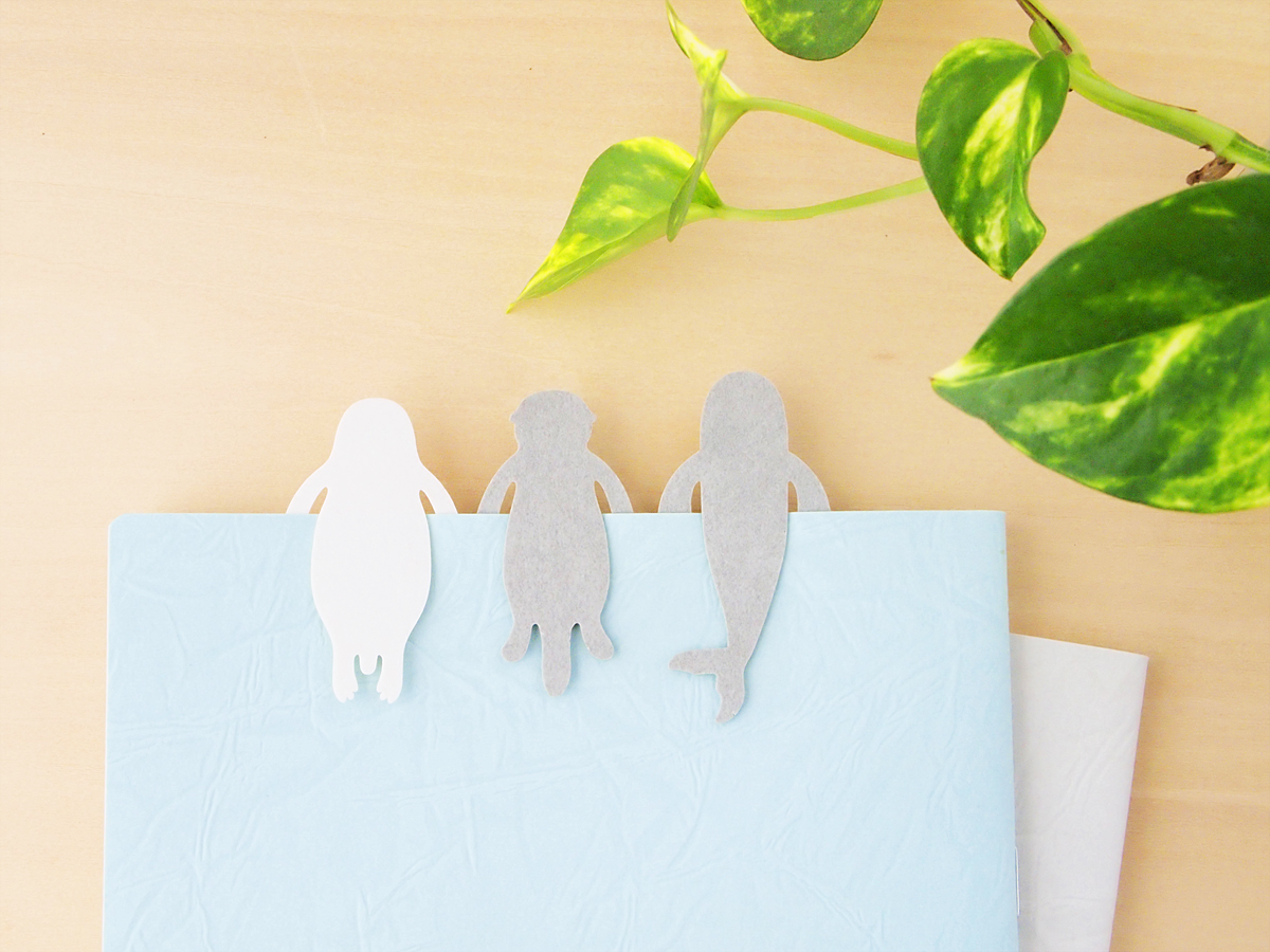 「クリップファミリー」は、水で好きな形に曲げて遊べる新感覚の紙クリップです。「クリップファミリー」は、2015年の発売以来、日本全国の文具店や書店をはじめ、アメリカ、ヨーロッパ、アジアなど世界20カ国以上で、累計50万セット以上販売されています。書類を留めるクリップや、本や手帳のブックマークとして使うことはもちろん、5分、水に浸けると好きな形に曲げて遊ぶこともできます。本体には、プラスチックのように硬く丈夫でありながら、天然繊維からできた生分解性で環境に優しいFSC認証紙を使用しており、脱プラスチックの推進や、SDGsに貢献します。新たに発売する「水族館・海のいきものシリーズ」は、「ラッコ」「アザラシ」「イルカ」の3種類。これまでに発売した「ペンギン」、「カワウソ」と合わせて、海を生き生きと泳ぐ愛らしい動物のデザインをお楽しみいただけます。